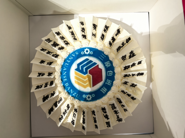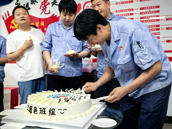 學(xué)習(xí)結(jié)束后,就進(jìn)入了第二個班組活動——回顧往昔,慶?!叭比龤q生日。磨工班組的成員們齊聲喊出“磨工班組三歲啦!”,有人趕忙去拿蛋糕,有人忙著搬桌子,還有人拆蛋糕包裝。組員彭高和高強小心翼翼地拿著蛋糕轉(zhuǎn)來轉(zhuǎn)去,認(rèn)真找著合適的角度,想把這開心的一刻拍下來留作紀(jì)念。作為這個大家庭的一員,每個人都在用心為這場慶?;顒映隽?,充分展現(xiàn)出團隊的凝聚力 。