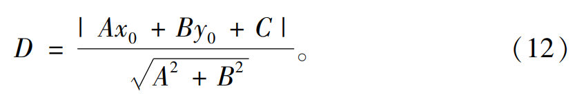 提取出缺陷區(qū)域后可以計(jì)算出該缺陷的最小外接矩形與該外接矩形的主軸直線公式,Ax+By+C=0于是小圓圓心(x0,y0)至主軸直線的距離D為