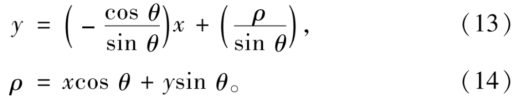 將圖像中所有的點(diǎn)(xi,yi)代入(14)式中,如圖15所示,如果多個(gè)不同的點(diǎn)在極坐標(biāo)系中得到的曲線相交,便意味著這些點(diǎn)可以連成一條直線。如果同時(shí)相交的數(shù)量超過(guò)了設(shè)定的閾值,則對(duì)該直線進(jìn)行擬合。