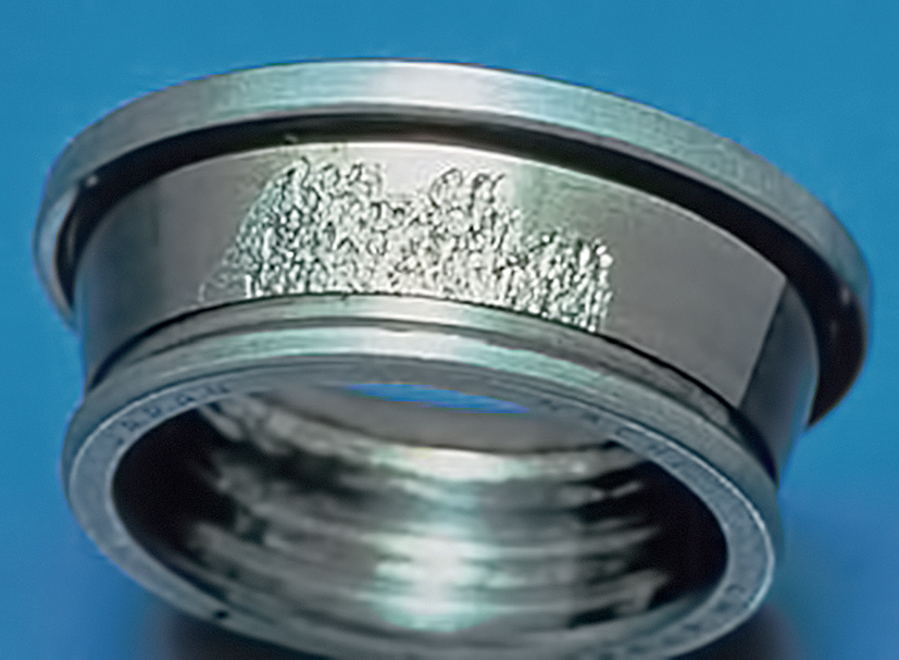 接觸表面處有損傷,這些損傷可能是原始的,即制造過程中形成的劃傷、碰痕,也可能是使用中產(chǎn)生的,如潤滑劑中的硬顆粒,軸承零件相對運(yùn)動產(chǎn)生的微小擦傷;損傷處可能存在潤滑不良,如潤滑劑貧乏,潤滑劑失效;不良的潤滑狀態(tài)加劇滾動體與滾道之間的相對滑動,導(dǎo)致表面損傷處的微凸體根部產(chǎn)生顯微裂紋;裂紋擴(kuò)展導(dǎo)致微凸體脫落,或形成片狀剝落區(qū)。這種剝落深度較淺,有時易與暗灰色蝕斑相混淆。