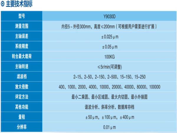Y90D系列圓度測量儀是以大承重高精度氣浮主軸為基準,采用計算機測量系統(tǒng)的轉(zhuǎn)臺式通用型圓度儀,適用于大型回轉(zhuǎn)體工件的的圓度、波紋度、同軸度等參數(shù)的測量,主要應(yīng)用于大型精密機械制領(lǐng)域。儀器主要由氣浮主軸、精密調(diào)平調(diào)心工作臺、花崗巖臺面和立柱、高精度電感測頭、精密旋轉(zhuǎn)編碼器、驅(qū)動控制電箱、高精度測量電箱、空氣過濾干燥系統(tǒng)以及基于windows XP的專用測量分析軟件組成。